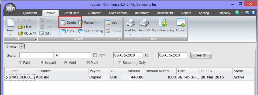 4. After delete an Invoice, you may need to reset the auto running number of the Invoice Reference Code if necessary.